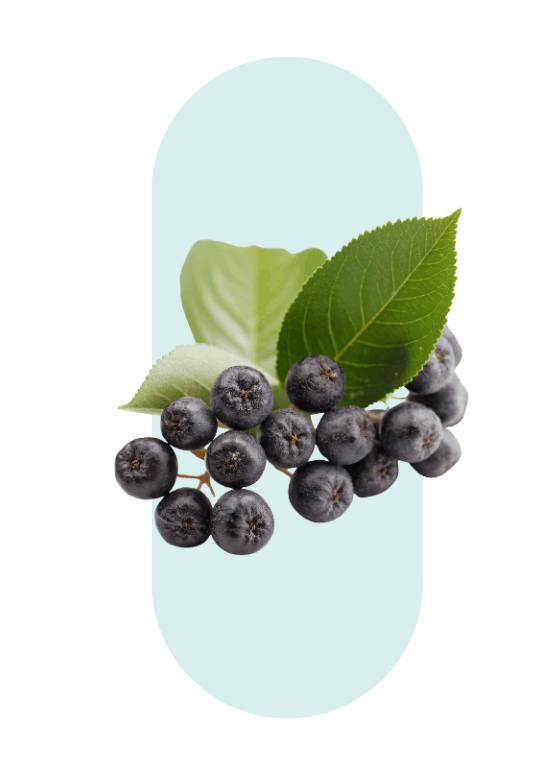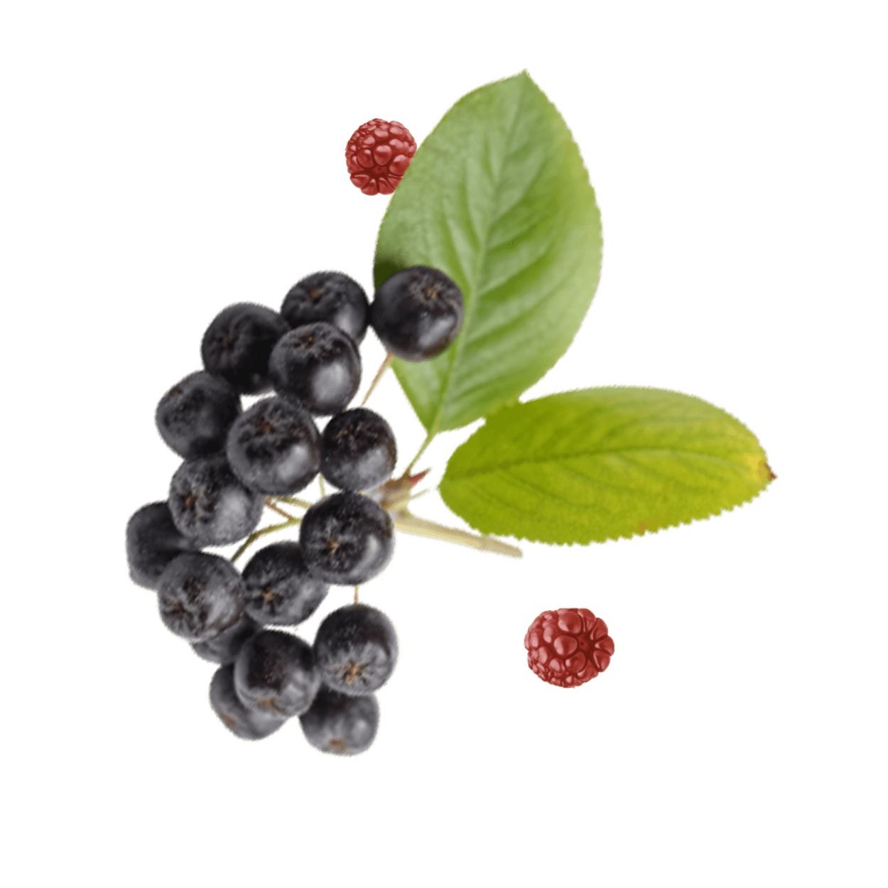Les fruits rouges, aronia et mûre, apportent des polyphénols.